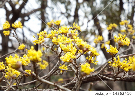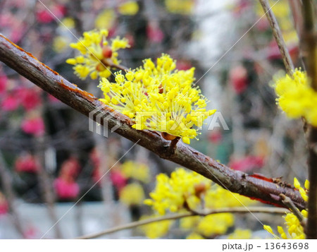 f春の訪れを知らせてくれる花、サンシュユの花。