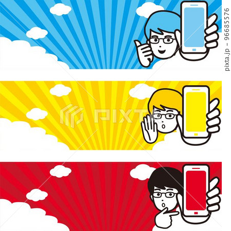 スマートフォンを持つ男性のバナー イラスト素材セット