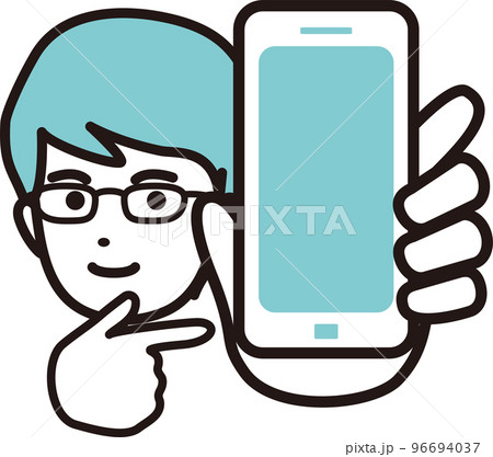 スマートフォンを持つ男性の吹き出しフレーム イラスト素材
