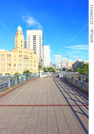 神奈川県横浜市、山下臨港線プロムナードと横浜税関の風景