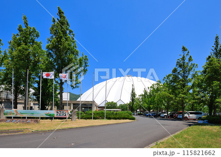 〈島根県〉6月の出雲ドーム 新緑の木々と出雲ドーム