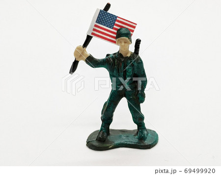 アメリカの国旗を持っている兵士