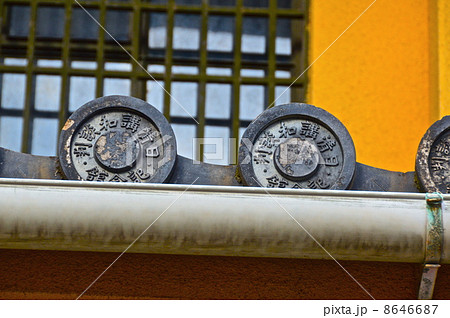 「日清講和談判・記念館」と刻まれた軒丸瓦(日清講和談判記念館・料亭 春帆楼/山口県下関市阿弥陀寺町)