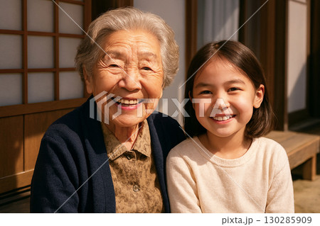昭和の情景 縁側で日向ぼっこするおばあちゃん