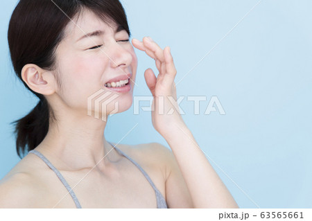 女性 肌トラブル UVケア 紫外線 日焼け 若い女性 ブルーバック