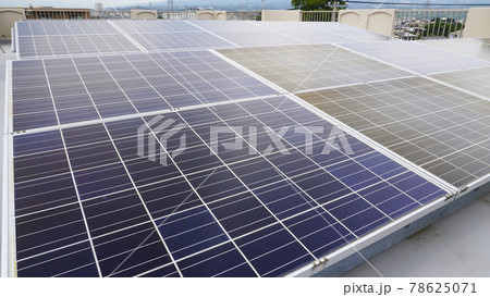 太陽光パネルのある風景<01>(屋上に設置されたソーラーパネル)