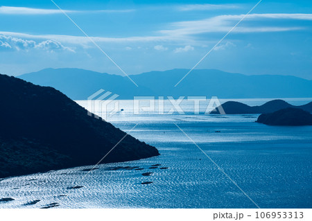 初秋の万葉の岬からの風景 赤穂御崎とカキいかだ3 兵庫県相生市
