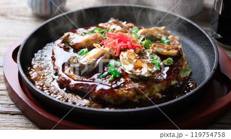 カキオコ、牡蠣入りお好み焼き - 日生、日本
