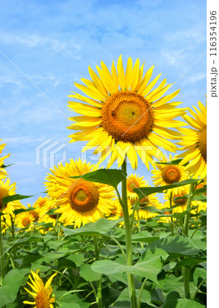 向日葵シリーズ(Ⅰ)夏空を見上げるヒマワリ【AI生成画像】