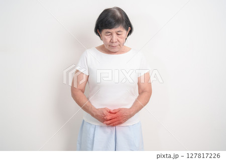 Elderly woman having Bladder pain for concepts of Bladder disease, Cancer Awareness Month May, Cystitis, Bladder Stone, urinary tract infection, UTI, Urethritis, Pyelonephritis, Urinary incontinence