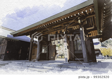 水彩画風 吉野神宮 神門 奈良県吉野郡吉野町