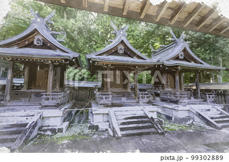 水彩画風 吉野神宮 摂社三本殿 奈良県吉野郡吉野町