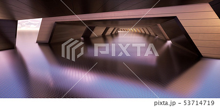 鮮豔細緻的全景景觀圖:幾何金屬隧道(3D CG 渲染數位插圖)