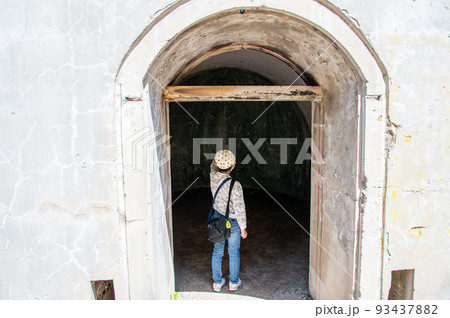 大久野島の北部砲台跡に入る男の子 広島県竹原市忠海町