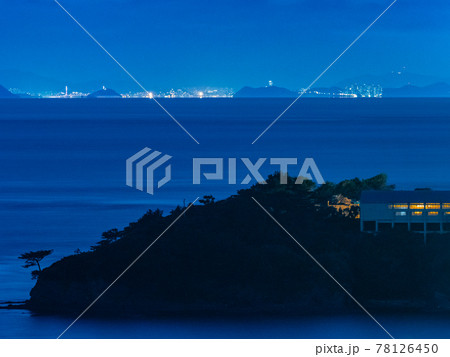 対馬 韓国展望台からの風景 鰐浦と海栗島越しの韓国