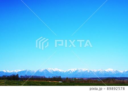 爽やかな大空と雄大な日高山脈の風景 北海道
