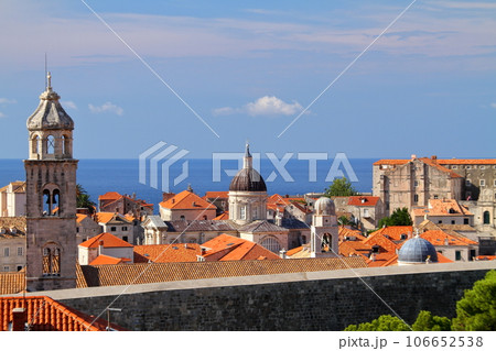 クロアチアの世界文化遺産、アドリア海の真珠ドブロブニク 城壁から望む旧市街の時計塔や教会のドーム