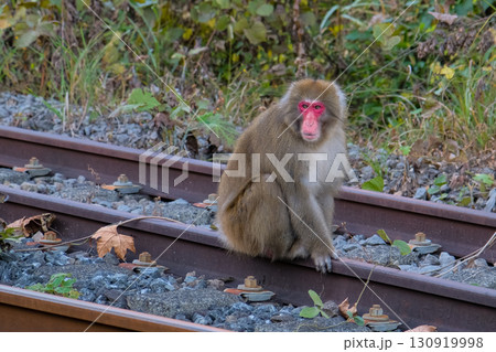 群馬県安中市 アプトの道、廃線の線路で見られる野生のニホンザル
