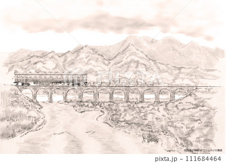 色鉛筆画 旧国鉄士幌線 タウシュベツ川橋梁 セピア風