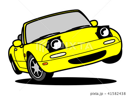国産コンパクトオープンスポーツ ジャンプ 黄色 自動車イラスト