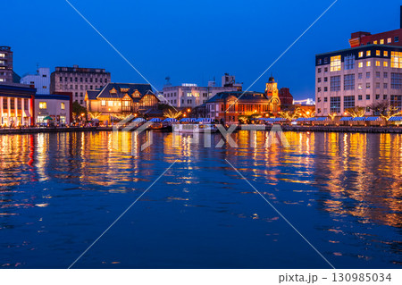 門司港レトロ地区のビル街の夜景