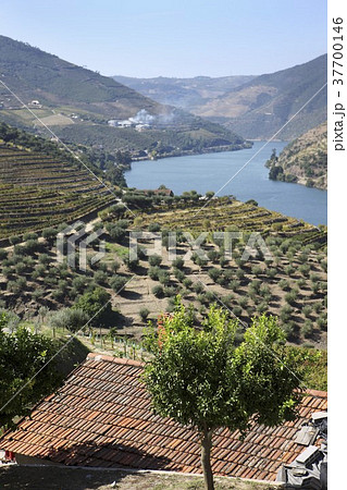 ポルトガル 湾岸都市ポルトのドウロ川のある風景