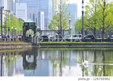 和田倉門守衛所跡と和田倉橋と和田倉濠(東京都千代田区皇居外苑)