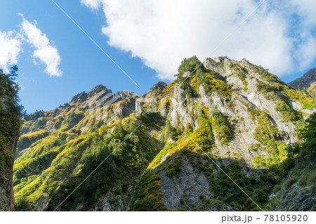 黒部渓谷下ノ廊下の断崖絶壁の渓谷