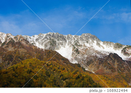 黒部渓谷下ノ廊下の紅葉と渓谷の写真