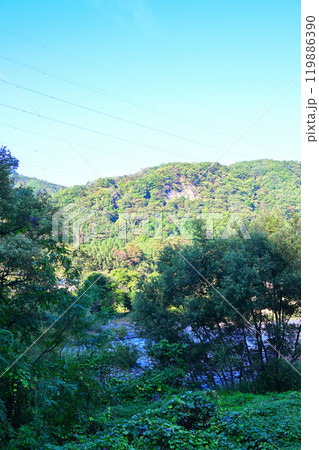利根川沿い田舎風景 下牧PAからの眺め 群馬県みなかみ町