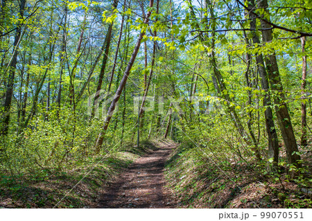 新緑の雑木林 ハイキングコース 大峰山登山道 群馬県
