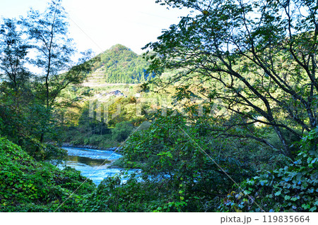 激流 早朝の利根川 上牧発電付近の風景 みなかみ町