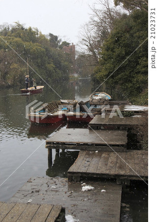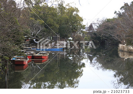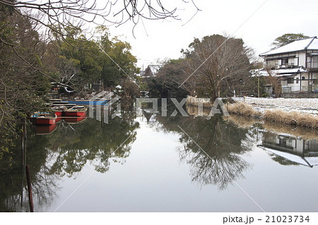 残雪残る柳川市クリーク(柳川橋付近の船着き場)