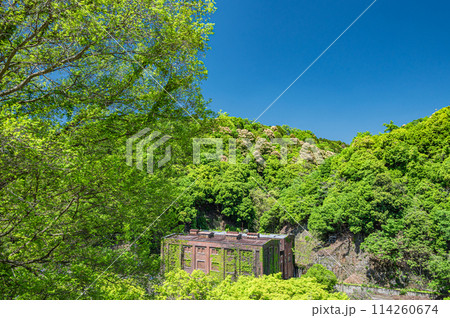 新緑に囲まれた旧宇治川電気志津川発電所跡 京都府宇治市