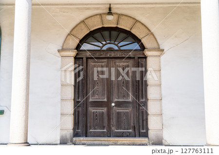 神戸居留地の英国領事館を模した旧辰馬喜十郎住宅(モダニズム建築)欧風の玄関 明治時代の疑洋風建築