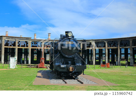 夏の旧豊後森機関庫と蒸気機関車 大分県玖珠郡