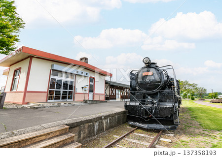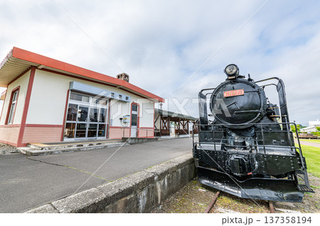 北海道帯広市 人気の観光地 晴天の旧国鉄広尾線 愛国駅と保存されているSL機関車