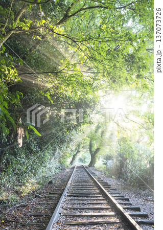 田園地帯に延びる桜並木 旧国鉄倉吉線 サイクリングイメージ