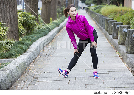 休憩をするトレーニングウェアの女性の全身イラスト素材