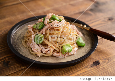 空豆と明太マヨパスタ