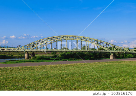Asahibashi Bridge over the Ishikari River at Asahikawa city, Hokkaido, Japan