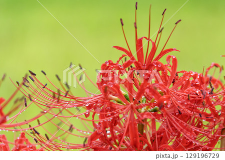 秋雨上がりの光芒に映える美しく開花した彼岸花 彼岸花観光スポット 伊坂区彼岸花の里