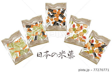 日本のお菓子「おかき」手描き水彩風イラスト