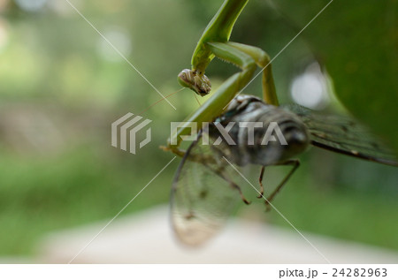 ミンミンゼミ・ミンミン蝉を捕食しているオオカマキリ・大蟷螂
