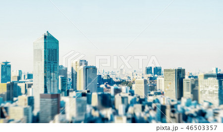 tokyo skyline aerial view with tilt shift effect