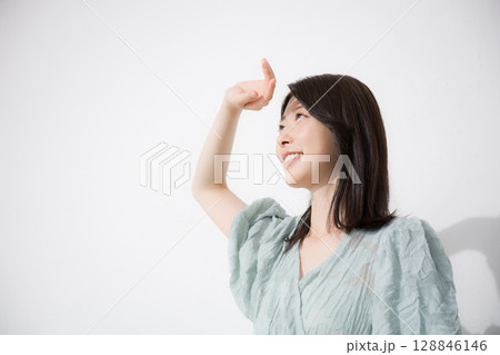 夏の太陽の日差し眩しい半袖の女性の日焼け防止イメージ 春夏の紫外線対策などに