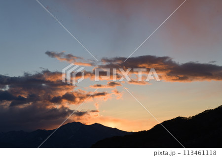 北杜市白州町から見る東の茅ヶ岳の朝焼け