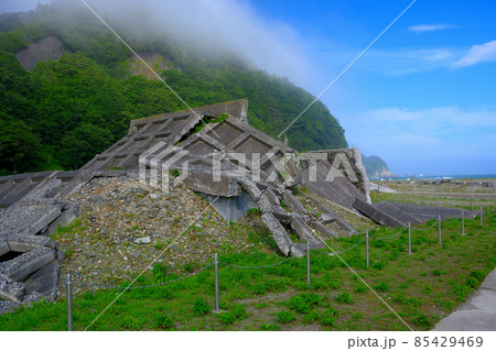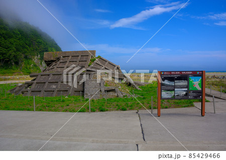 震災遺構・津波を後世に伝える伝承の遺構、明戸海岸防潮堤・三陸海岸・北山崎・東北・岩手県田野畑村(2)