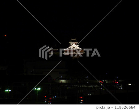 夜に浮かび上がる瓦一枚運動で再建された明智光秀ゆかりの福知山城