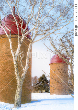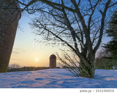 北海道根室市・雪景色の明治公園サイロ広場 / Nemuro, Japan
